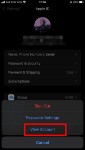 - 輕敲 ”媒體與購買“ 然後 ”查看賬戶”。