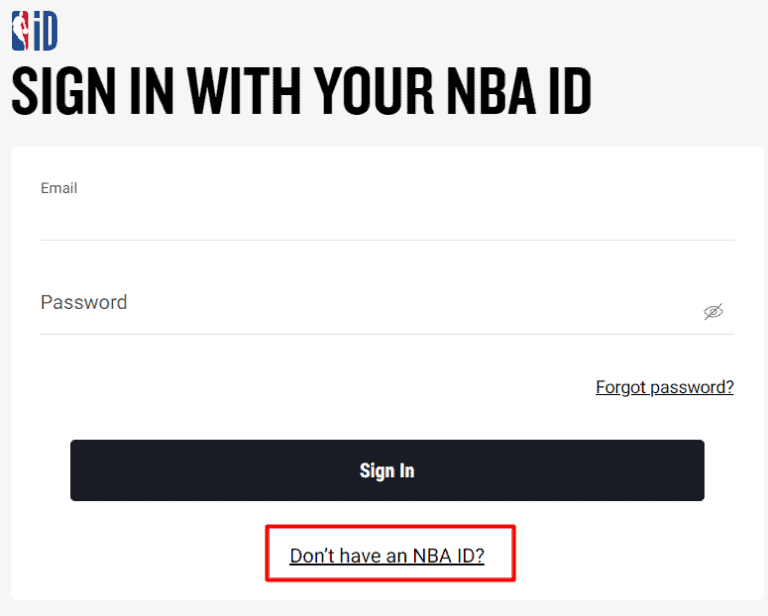 - 使用您的 NBA ID 登錄或點擊“沒有 NBA ID 來創建一個”。