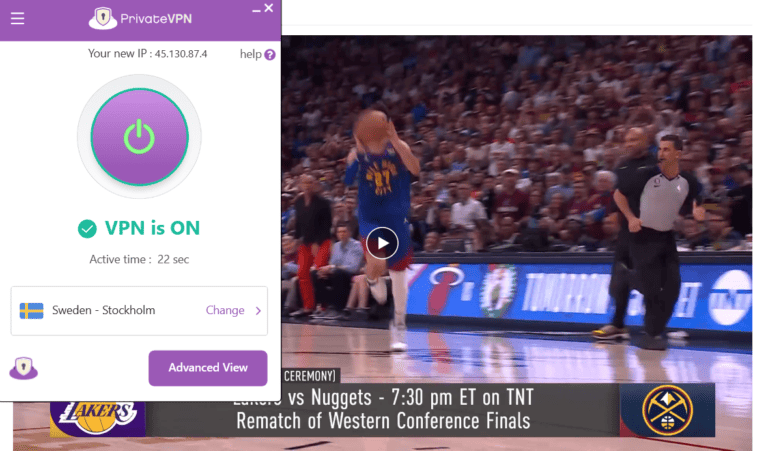 要使用 PrivateVPN 觀看 NBA League Pass,連接到 PrivateVPN 的 200 多個服務器之一(位於提供 NBA League Pass 的位置)。