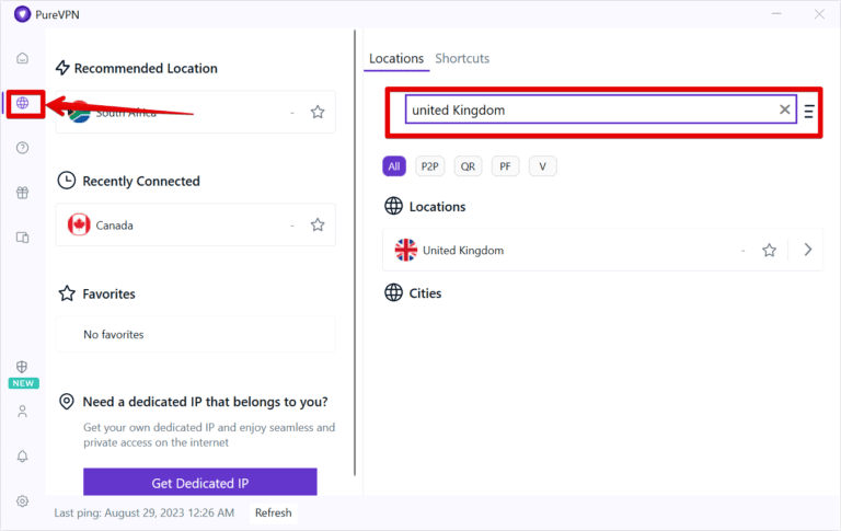 為避免每次連接到 VPN 時獲得不同的 IP 地址,請獲取PureVPN的專用IP地址在沒有停電的地區。