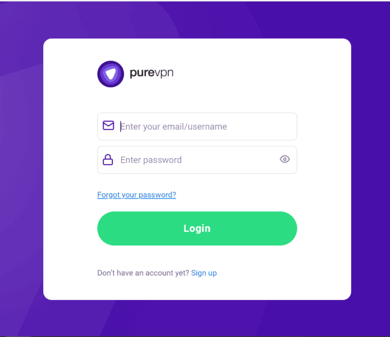 - 打開 PureVPN 應用程序並輸入您的登錄詳細信息。