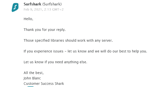 解決問題所需要做的只是切換到不同的 Surfshark 服務器位置。