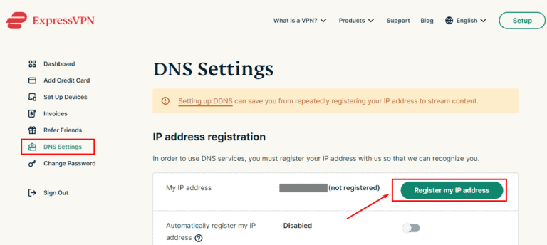 - 登錄您的ExpressVPN 帳戶並選擇 DNS設置選項卡。