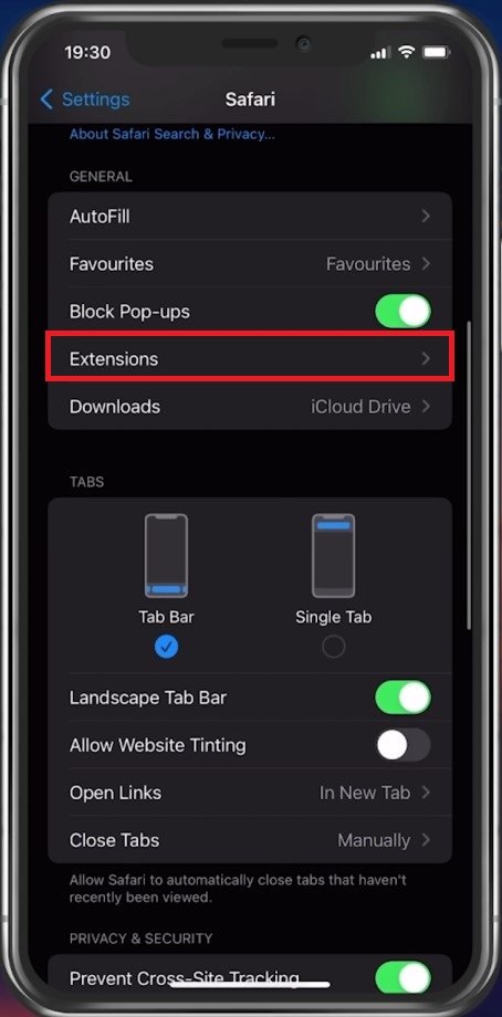 iPhone 設置 > Safari > 擴展