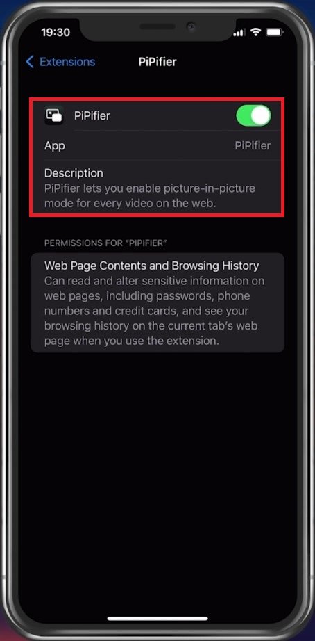 點擊 PiPifier 並確保啟用此擴展。