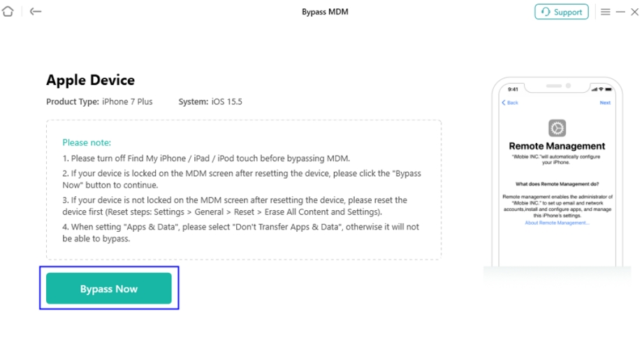 AnyUnlock 允許用戶繞過 MDM 限制,而不會丟失數據或聯繫管理員。這對於繞過學校發行或公司管理的 iPhone 和 iPad 上的遠程設備管理限制非常有用。