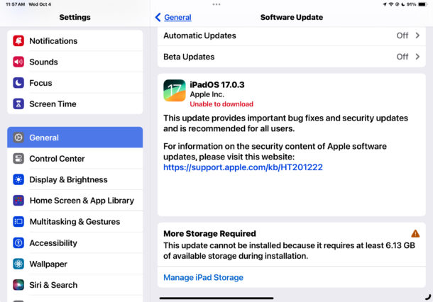 儘管是一個小型軟件更新,但它需要大量可用存儲空間才能下載和安裝更新,因此請嘗試至少有 10GB 的可用存儲空間。