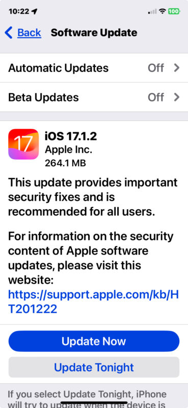 iOS 17.1.2&iPados 17.1.2使用安全修復程序發布了iPhone&iPad