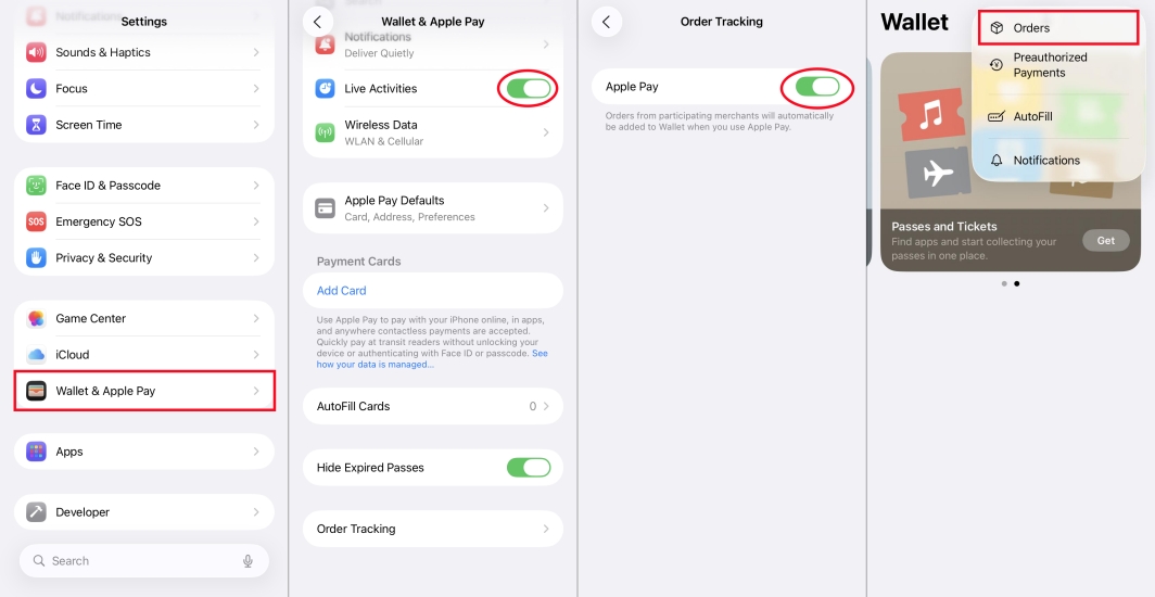 步驟2。選擇訂單追踪並打開蘋果支付。