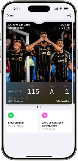 iOS 18 增強了活動門票設計,包括體育場地圖、活動詳細信息、鎖屏上的現場活動和動態島,以及與 Apple Music 播放列表的集成。