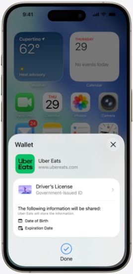 iOS 18 改進了錢包中的數字 ID 共享,讓用戶在僅驗證年齡等情況時選擇共享內容,並提供安全提示。