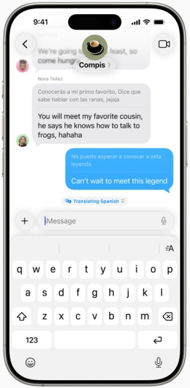 語言差異不必再阻止對話。 iOS 26 的消息中內置了實時翻譯。無論使用何種語言,溝通都感覺無縫。