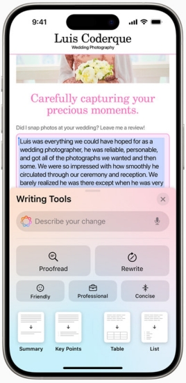 Apple 進軍 AI 領域始於 iOS 18,其中引入了 Apple Intelligence。功能包括: