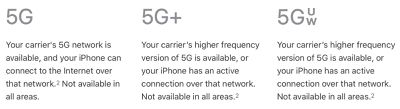 當您連接到 5G 網絡時,您會看到一些不同的符號,所有這些符號都確認您位於 5G 網絡上。當連接到更快的毫米波 5G 網絡時,5G+ 是 AT&T 的符號;當您在 Verizon 設備上擁有更高速的毫米波連接時,會顯示 5G UW 符號。