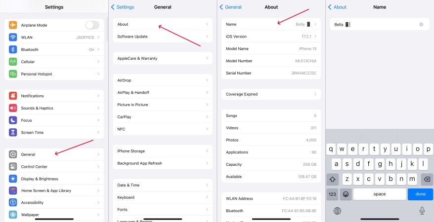 步驟2。輕敲關於 > 姓名並輸入不同的名稱。