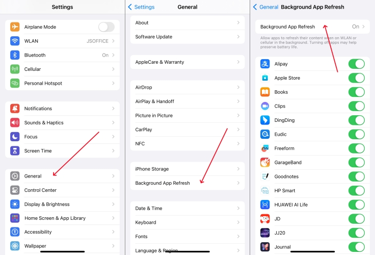 步驟2。繼續點擊常規,然後點擊後台應用程序刷新。