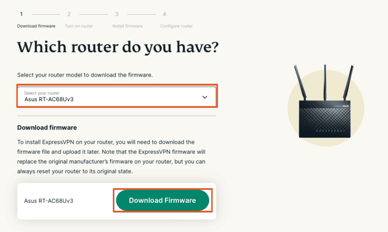 - 下載 ExpressVPN 路由器固件選擇您的路由器型號。