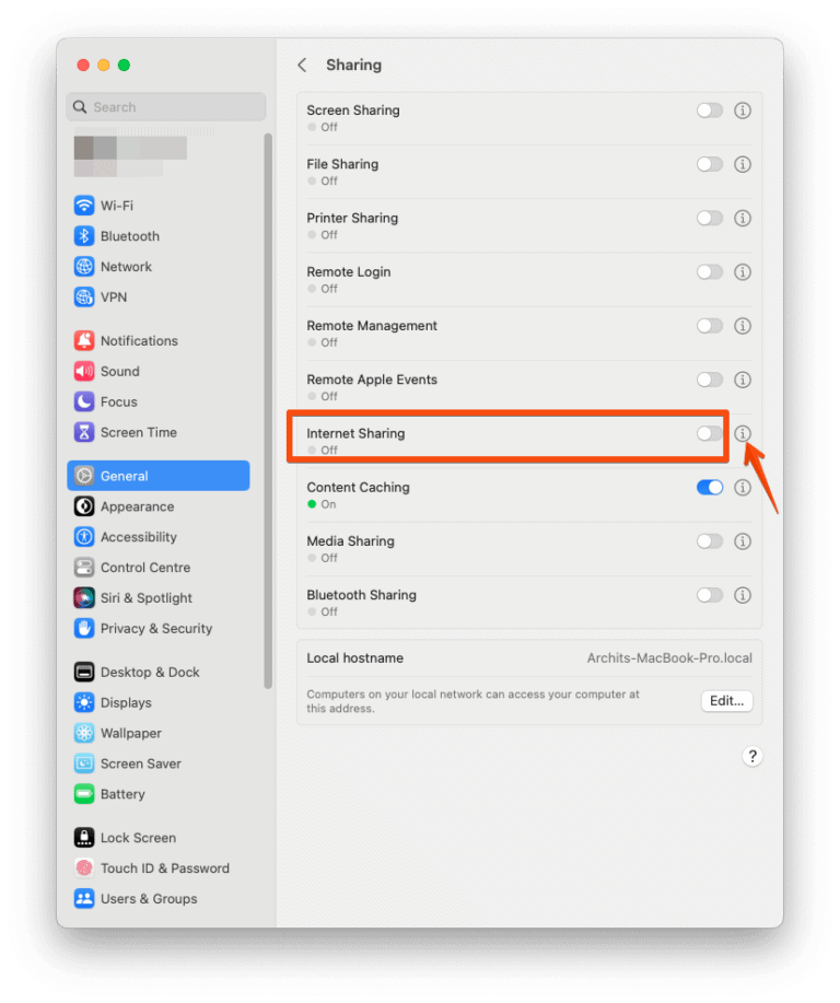 - 打開“互聯網共享”並選擇“我” 旁邊的圖標。