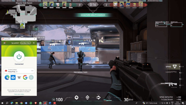 使用 ExpressVPN 的香港服務器玩《Valorant》。