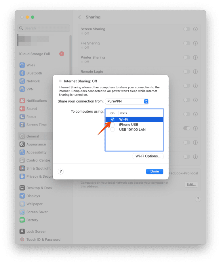 - 從標記為“的下拉菜單中分享您的連接,”選擇 VPN。