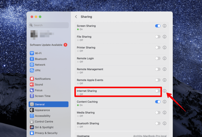 - 打開“互聯網共享”,然後單擊“我”在它旁邊。