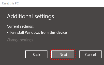 步驟5:在“重置此電腦”窗口中,單擊“下一步”。