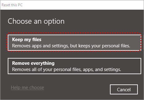 步驟 3:在新窗口中選擇“保留我的文件”。