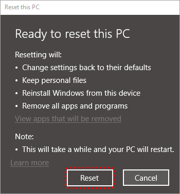 步驟 6:最後,單擊“重置”以啟動 PC 重置過程。