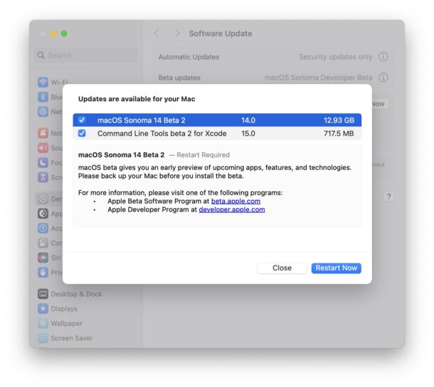 - 當您看到 MacOS Sonoma 14 beta 2 更新可用時,選擇下載並安裝它