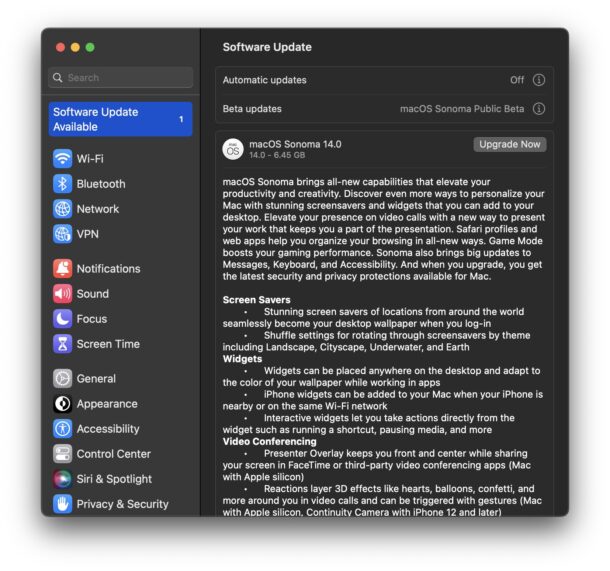 如果您當前運行的是 macOS Sonoma beta 或 RC,則獲取 RC 2 版本就像任何其他軟件更新一樣: