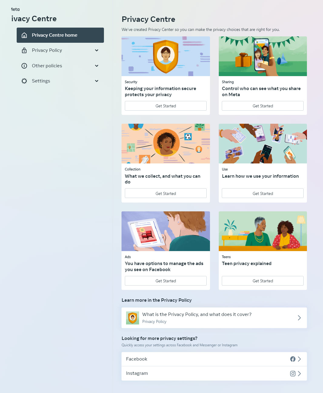 Facebook 的母公司 Meta 允許您管理其所有服務的隱私,包括在該公司的 Facebook 和 Instagram隱私中心,儘管您可能會發現您需要單獨訪問一些單獨的服務,包括 WhatsApp、Facebook 和 Instagram,檢查您的帳戶選項,以找到您的所有隱私設置。