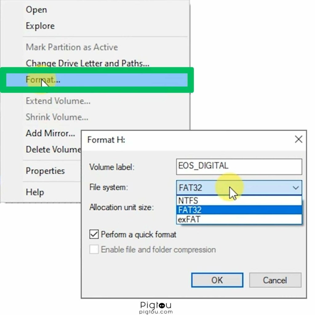 - 重構使用FAT32或EXFAT的microSD卡(將SD卡連接到計算機>選擇“分區管理“>選擇”格式”選項>選擇FAT32或EXFAT)