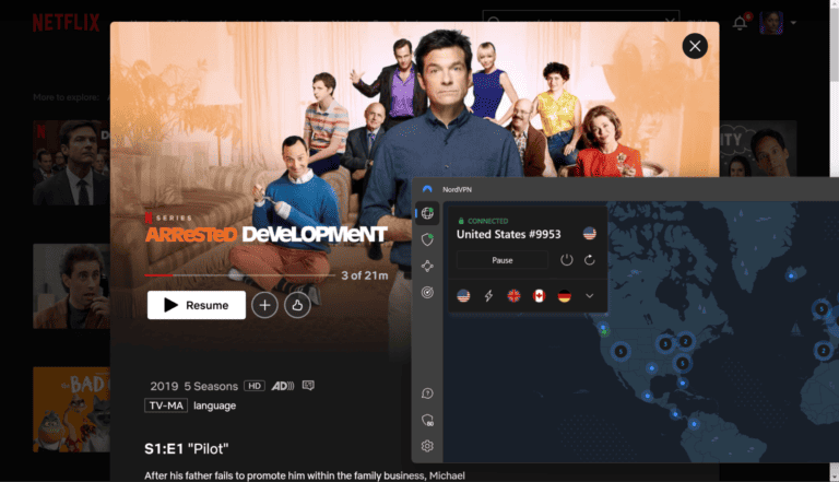 為了對此進行測試,我使用 NordVPN 的一台美國服務器觀看了《發展受阻》,這是 Netflix 美國圖書館獨家提供的節目。