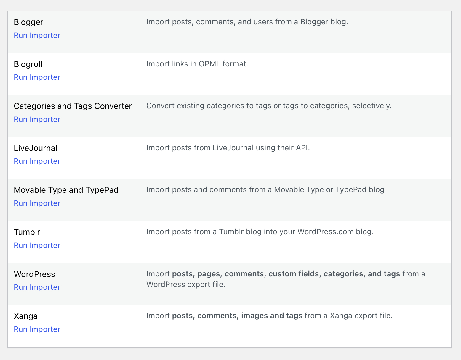 LiveJournal 在美國已經不再流行,甚至不在 WordPress 潛在導入位置的主要列表中。截圖:WordPress