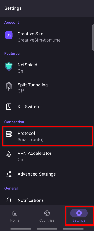 如何更改 ProtonVPN 中的協議:
