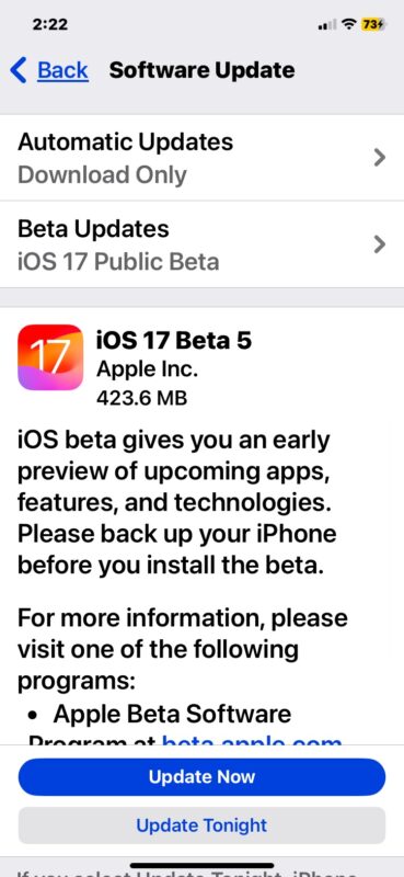 - 選擇“下載並安裝”iOS 17 Public Beta 5 或 iPadOS 17 Public Beta 5