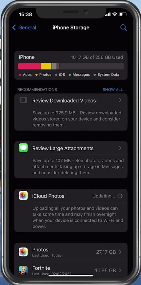 iPhone設置>一般> iPhone存儲