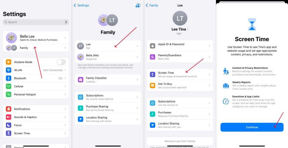 步驟1。前往設置 > 家庭並點擊您孩子的名字。