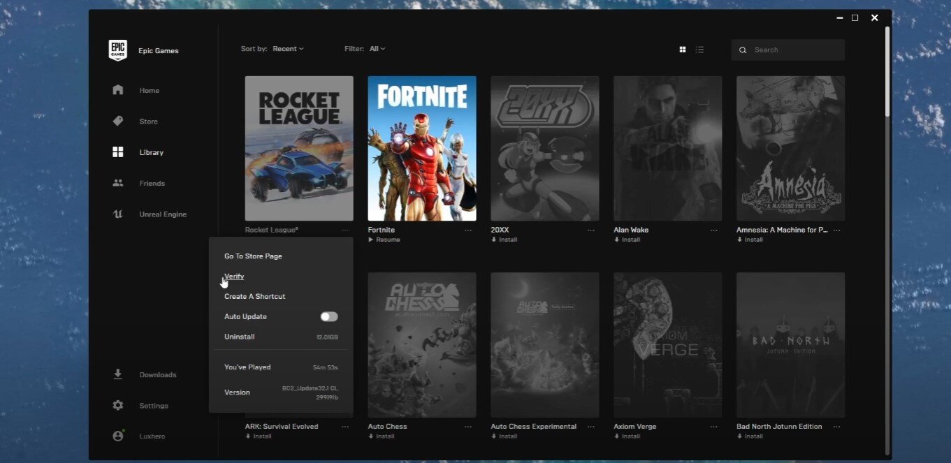 Epic Games > 庫 > Rocket Leauge > 驗證
