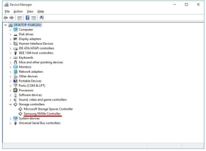 步驟5。重新啟動後,您可以轉到設備管理器以確認是否成功安裝了驅動程序。您可以搜索”裝置經理”在搜索框中打開程序。找到“存儲控制器”選項。如果“三星NVME控制器”顯示,這意味著您成功安裝它。