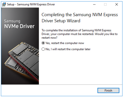 步驟4。在此步驟中,嚮導將開始安裝驅動程序。當設置完成屏幕顯示時,選擇“是的,現在重新啟動計算機”選項。如果您希望以後安裝驅動程序,則可以選擇“不,稍後我會重新啟動計算機”。