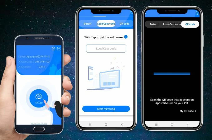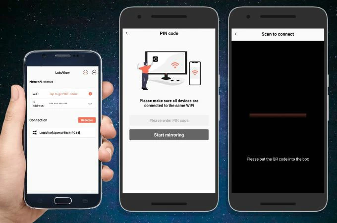 擁有這個免費的屏幕鏡像應用程序,可以將您的小屏幕視圖保存到更大的屏幕上。通過幕視,您可以輕鬆地將索尼電視投屏到三星手機上。您不僅可以將手機顯示在電視上,還可以顯示在計算機屏幕上,無需電纜或適配器。除此之外,幕享還內置了屏幕錄製功能,可讓您在鏡像時捕捉屏幕活動。此外,它支持多種鏡像模式,包括全屏模式和橫向模式,並允許您從接收設備控製鏡像設備。