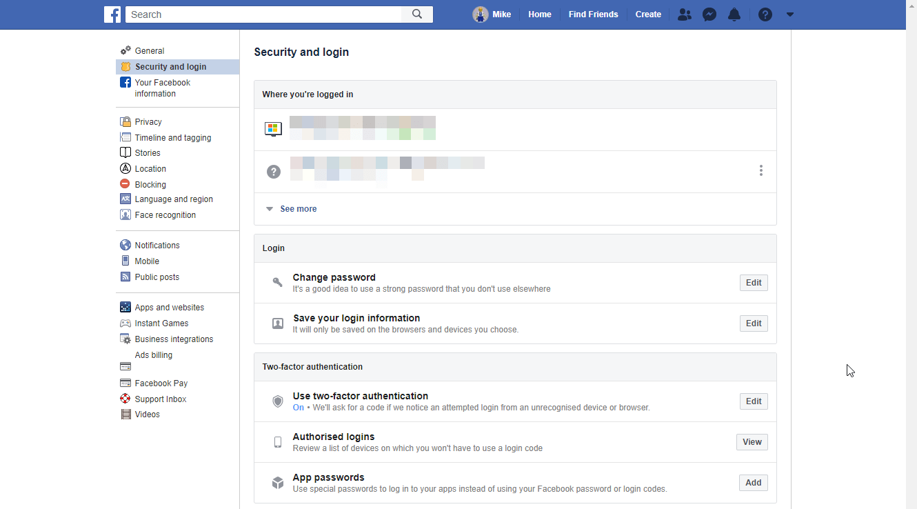 Facebook 的兩因素設置可以通過任何設備上的應用程序或通過網絡瀏覽器中的 Facebook 獲得。導航到“設置”>“安全和登錄”,您將看到各種可能有用的選項。這包括能夠擁有三到五個“值得信賴的朋友”,如果您的帳戶被鎖定,Facebook 可以向他們發送密碼重置信息,以及能夠為您使用 Facebook 和 Messenger 應用程序的特定設備設置超級安全的“應用程序密碼”。