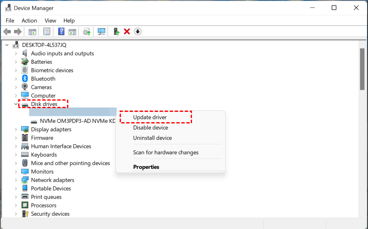 步驟 3. 從上下文菜單中選擇“更新驅動程序”選項。