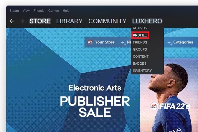 打開您的 Steam 客戶端並導航到您的輪廓。您還可以在瀏覽器上使用 Steam 執行相同的步驟。