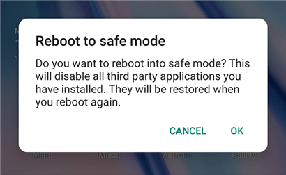 步驟 4. 您的手機將詢問您是否要啟用安全模式。點擊“確定”,您的手機將重新啟動並進入安全模式。