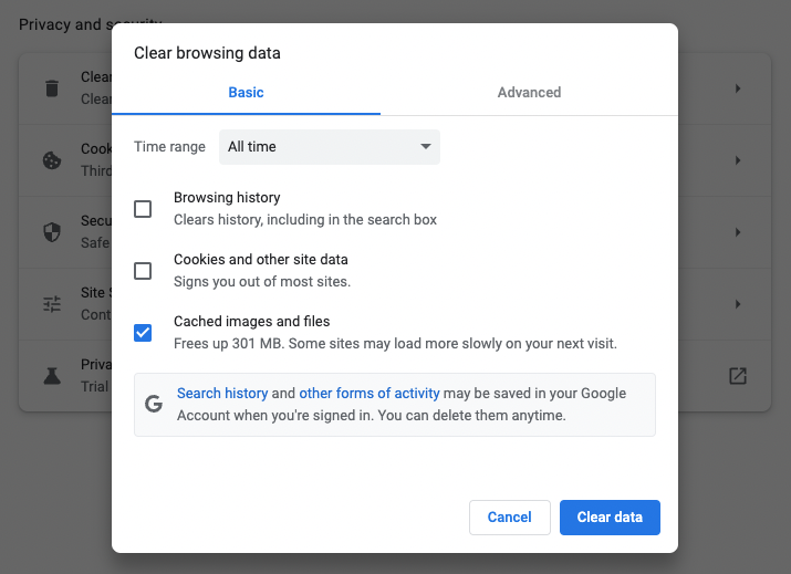 隨著時間的推移,您的瀏覽器緩存和 cookie 可能會導致流媒體問題。清除它們是一個快速而簡單的修復方法。