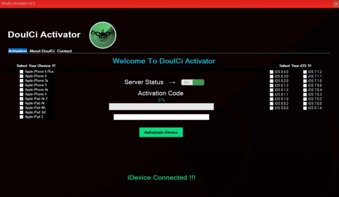 最終的免費 iCloud 刪除器是DoulCi激活劑。這是提供激活鎖移除幫助的最初服務之一。通過使用它,您可以重新訪問Apple設備,但之後該設備將無法再打開蜂窩數據。下載文件後,您可以使用DoulCi Activator刪除激活鎖。