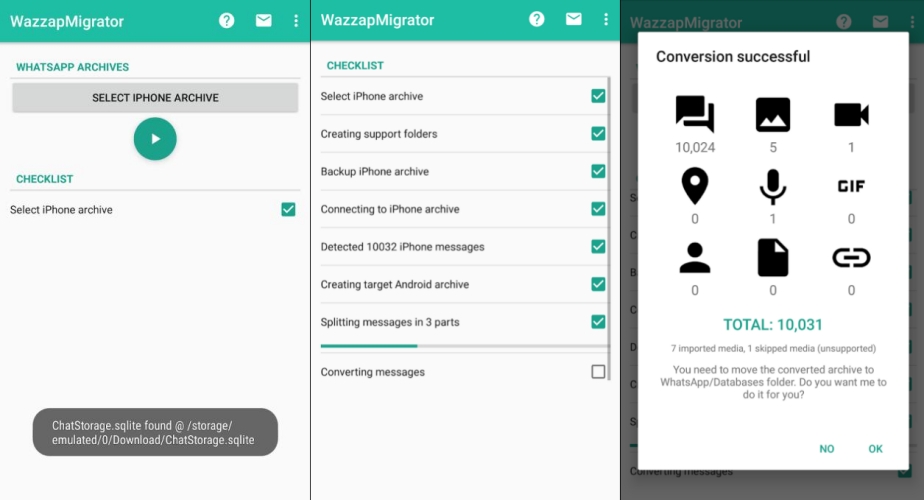 WazzapMigrator 是一款付費應用程序,下載需要 9.99 歐元。如果您從 iPhone 切換到 Android,您可以藉助 WazzapMigrator 傳輸您的 WhatsApp 數據,包括消息、照片、視頻和文件。此方法要求您先通過 iTunes 備份您的 iPhone。