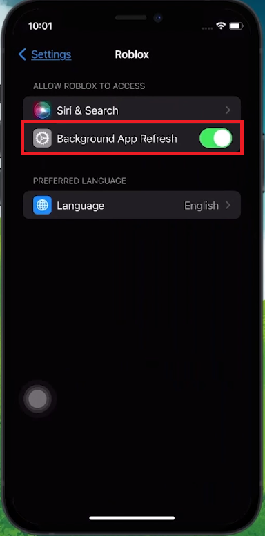 iPhone 設置 > Roblox > 後台應用程序刷新